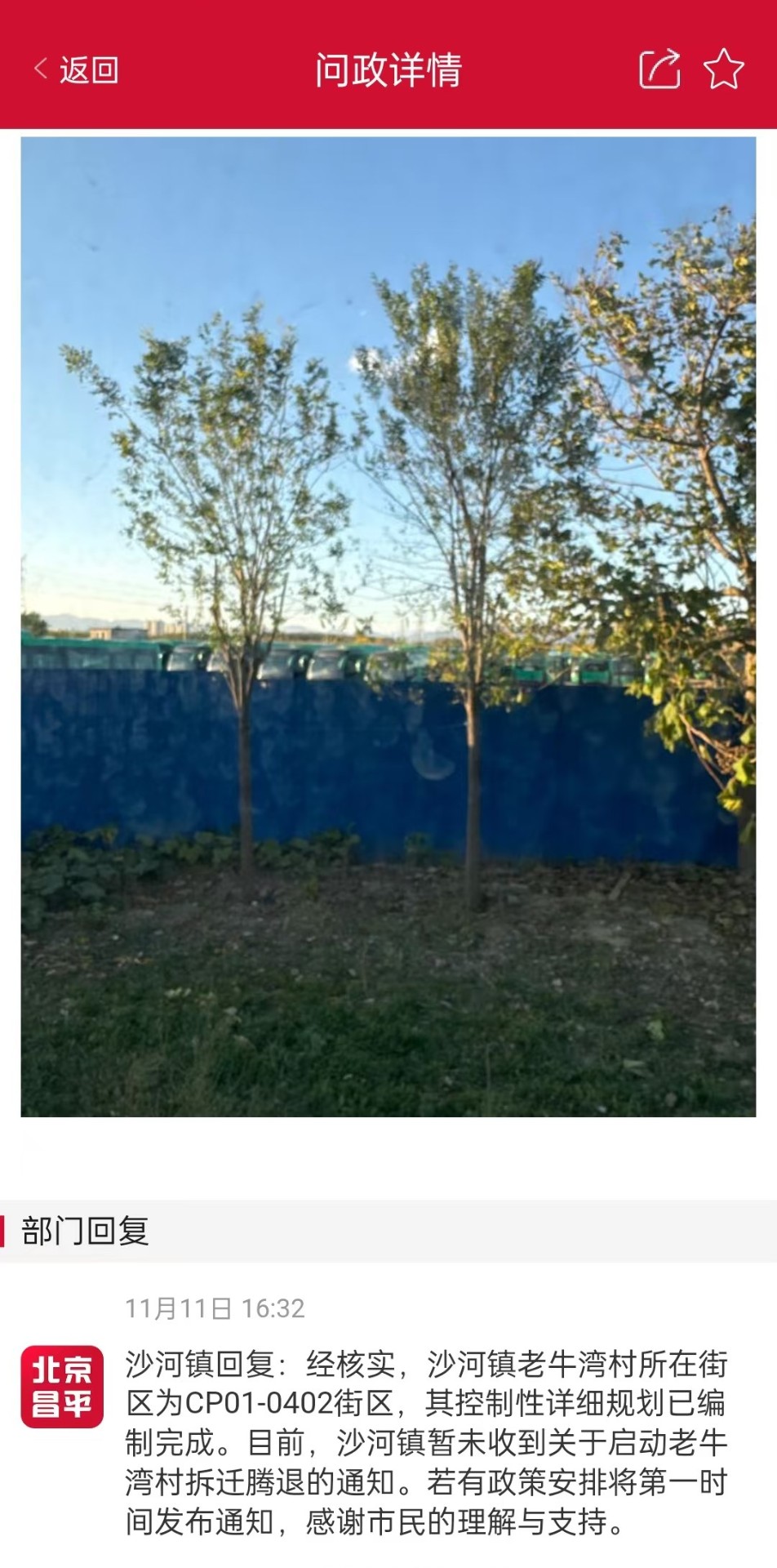 方興建筑提示您,北京昌平公眾號(hào)沙河鎮(zhèn)回復(fù):經(jīng)核實(shí),沙河鎮(zhèn)老牛灣村所在街區(qū)為CP01-0402街區(qū),其控制性詳細(xì)規(guī)劃已編制完成。目前,沙河鎮(zhèn)暫未收到關(guān)于啟動(dòng)老牛灣村拆遷騰退的通知。若有政策安排將第一時(shí)間發(fā)布通知,感謝市民的理解與支持。